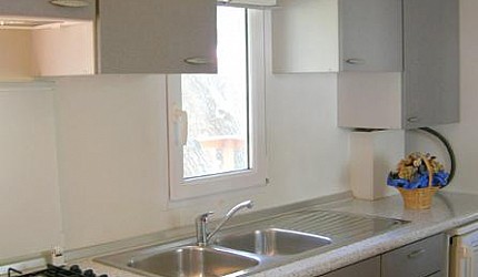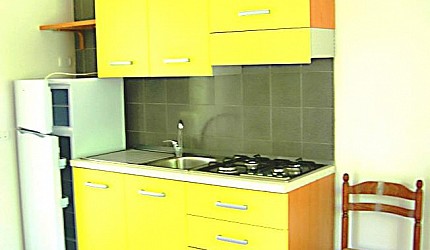 De appartementen Turchese zijn 30 m² groot. Ze bestaan uit 1 slaapkamer met tweepersoonsbed en kledingkast, woonkamer met slaapbank voor 2 personen, tafel, stoelen, keuken. De badkamer beschikt over een douche, toilet, wastafel en bidet. De keuken heeft een gasfornuis, koelkast, pannen en vaatwerk. De veranda kijkt uit op het park, heeft een tafel, stoelen en barbecue en is 19m² groot. Het appartament kan worden voorzien van air-conditioning. Geschikt voor mindervaliden.