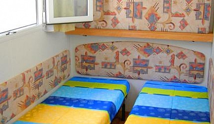 De Mobilhome Venezia is een driekameraccommodatie van 24m² voor 4 personen. Bestaat uit 1 slaapkamer met tweepersoonsbed, 1 slaapkamer met 2 eenpersoonsbedden, woonkamer, tafel, stoelen, keuken. De badkamer bestaat uit een douche, toilet, wastafel. Veranda van 24m² met tafel en stoelen met zicht op het naaldbos. Geschikt voor families met kleine kinderen en stellen.