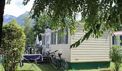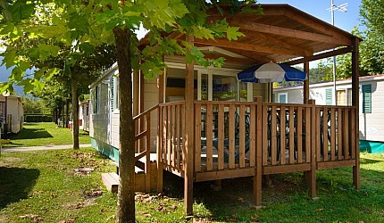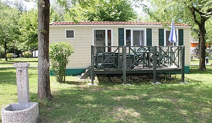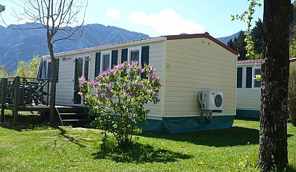 KomfortablesMobilheim mit 2 Bädern. Version Levico: Ruhige Lage nahe des Biotops von Levico und dem See. Hunde sind in diesem Mobilheim zugelassen.
