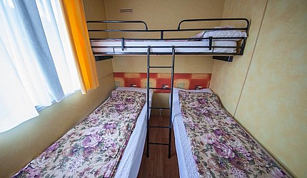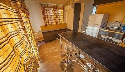 Ausstattung: Doppelzimmer, Dreibett Zimmer (1 Einzel-, 1 Etagenbett), zwei Toiletten mit Dusche, Küche und Wohnzimmer, Sofabett, Klimaanlage, Mikrowelle, TV. Holzterrasse.