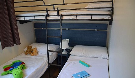 Alle kamers zijn voorzien van kleerhangers. Zowel in het woon- als het slaapgedeelte zijn verduisterende klamboes aanwezig.