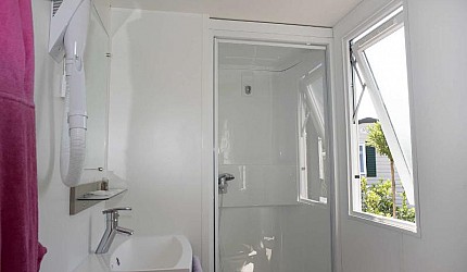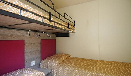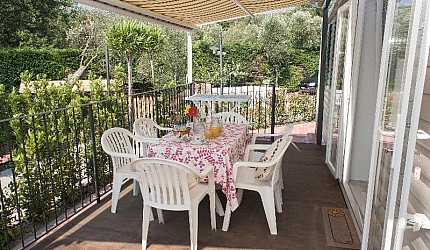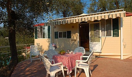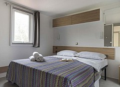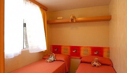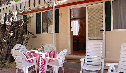 Sono composte da una camera matrimoniale, una camera tripla con tre lettini separati e servizi interni. Le due camere sono separate dalla zona giorno composta dall'angolo cottura attrezzato all'uso ed equipaggiata con frigorifero e piano cottura a gas e il soggiorno. All'interno della casamobile sono presenti anche Tv-sat, aria condizionata ed internet via cavo. Ogni casetta ha la propria terrazza esterna con tenda parasole, tavolino e sedie e posto auto nelle vicinanze.