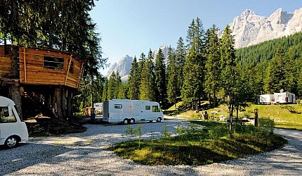 Circondata da una natura idilliaca, la piazzola comfort di 140 mq é rinforzata e preparata con ghiaia o con mattonelle erbose ed é dotata di allacciamento alla corrente elettrica 220 Volt/16 Ampere (spina CEE), di collegamento antenna TV ed in estate di approvvigionamento acqua potabile e di scarico delle acque grigie. Il facile accesso alle piazzole ed al Camperservice per l' approvvigionamento di acqua potabile e per lo scarico delle acque grigie, per non parlare dei piacevoli servizi a cinque stelle del Mountain Resort Patzenfeld, fanno del Caravan Park Sexten la meta più innovativa e moderna in Alto Adige per gli amanti della vacanza su ruote.